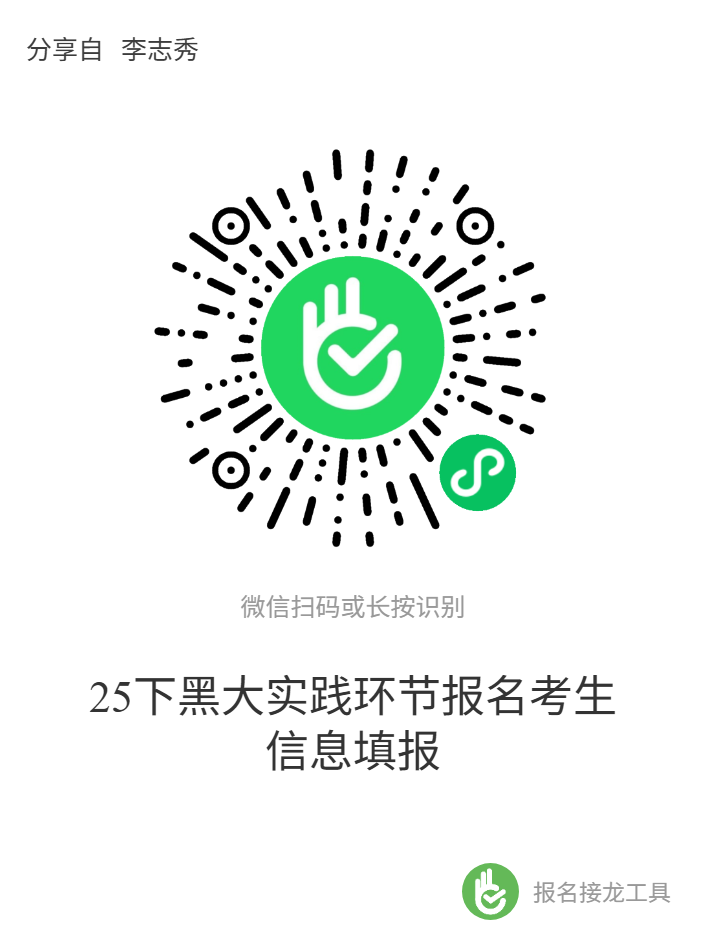 2.填报信息。扫描下方报名二维码,填写报名信息,且填写的专业、课程要与省招办网站预报名的数据一致。