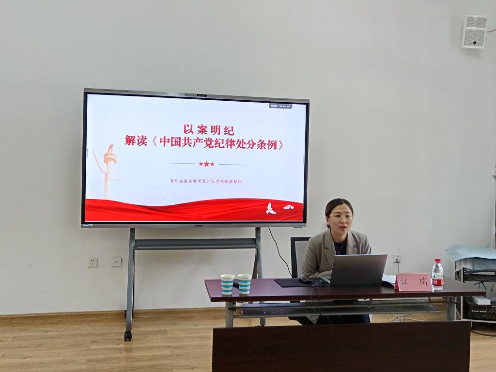 为深入学习贯彻习近平总书记关于党纪学习教育的重要讲话和重要指示精神,贯彻落实《黑龙江大学学习宣传贯彻〈中国共产党纪律处分条例〉(修订)的方案》,引导党员干部学纪、知纪、明纪、守纪,增强政治定力、纪律定力、道德定力、抵腐定力,6月3日下午,继续教育学院在党员之家召开党纪学习教育宣讲会,特邀请校党委组织部副部长江瑞同志为大家作《中国共产党纪律处分条例》(以下简称《条例》)解读辅导。继续教育学院全体党员参加本次宣讲。会议由继续教育学院直属党支部书记、院长孙勇主持。