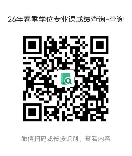 现将2026年春季学期函授、自考学位专业课考试结果发布如下,请用微信扫描下方二维码进行查询。